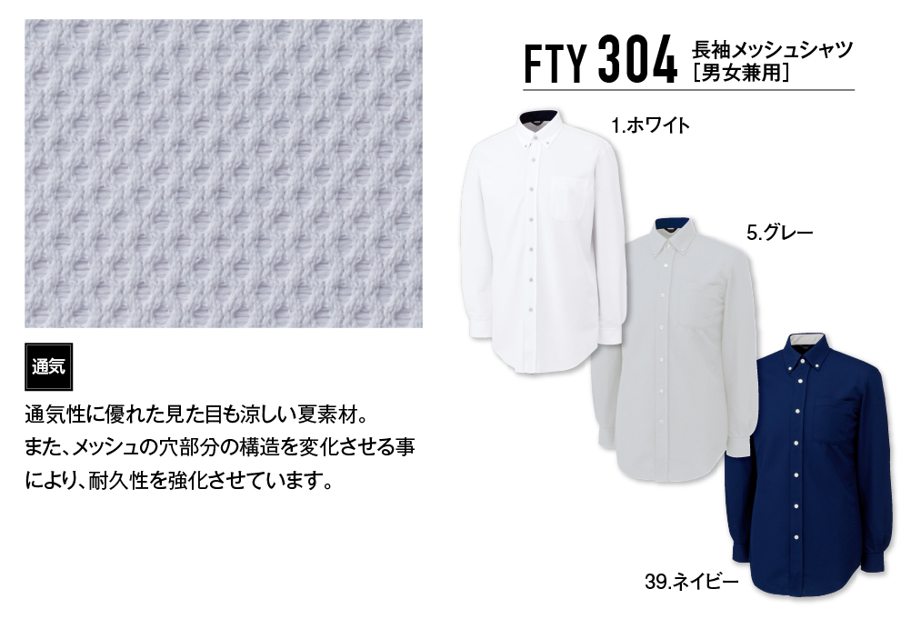 ブラインドトリコット2.0使用アイテム ― FTY304/長袖メッシュシャツ(男女兼用)