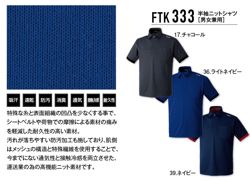 高耐久クールニット使用アイテム ― FTK333/半袖ニットシャツ(男女兼用)