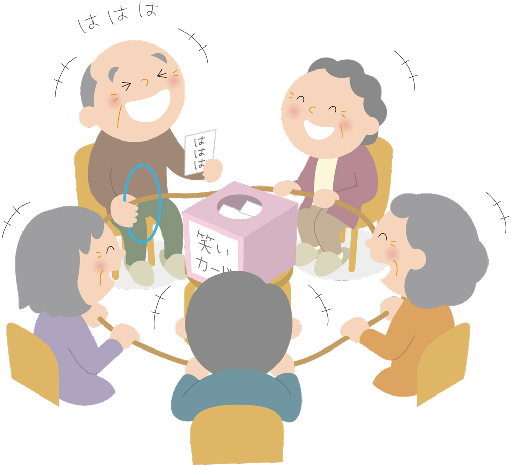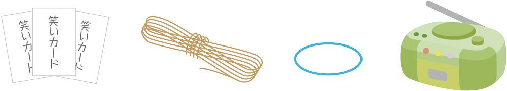 4. 音楽が止まったとき、輪っかを手にしている人に、「笑いカード」をひいてもらいます。